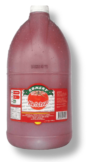 Agua, vinagre (agua, ácido acético), azúcar, almidón modificado de maíz, sal, pasta de tomate, aceite vegetal, estabilizante (goma xantan), estabilizante (carboximetil celulosa), colorante (caramelo I), conservante (benzoato de sodio), conservante (sorbato de potasio), regulador de acidez (ácido cítrico), especias (cebolla, comino, ajo, pimienta negra), edulcorante (triclorogalactosacarosa), edulcorante (acesulfame de potasio), secuestrante (etielen diamino tetra acético), colorante (SIN 129), acentuador de sabor (glutamato monosódico), antioxidante (ácido ascorbico). CONTIENE SOYA.